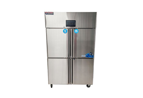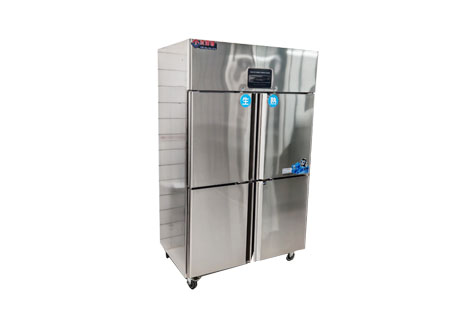 1、厨房四门冰柜(商用四门冰柜)双机双温,一机两用,上门冷藏,下门冷冻。