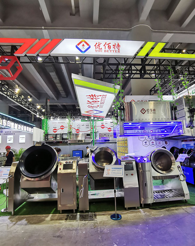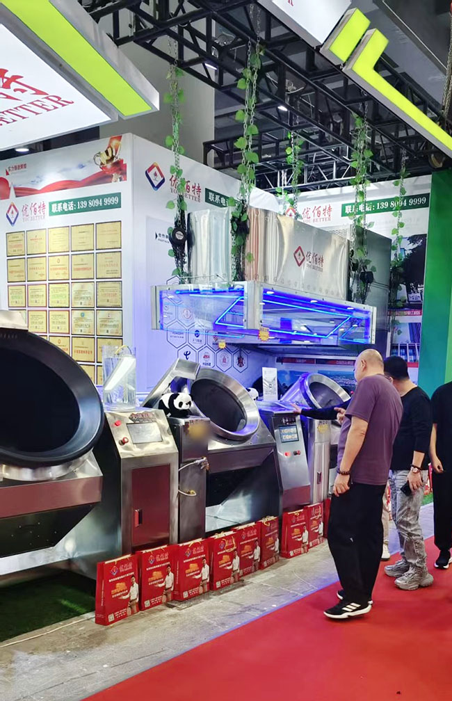 熟悉四川优佰特厨房设备制造股份有限公司的朋友都知道,在往届的广州展会上,我公司主要展示的都是新研发的油烟净化一体机设备。而这次的广州展会,则增加了不少产品。不但有我公司今年主打的六款油烟净化一体机,还有三款高效油烟净化器、两款新式烤箱、四款新式电磁炉以及六款智能炒菜机器人。这些产品全都是科技与审美的结合,不但,造型美观,而且功能齐全,能够满足现在客户的新需求,适应商用厨具发展的新趋势。